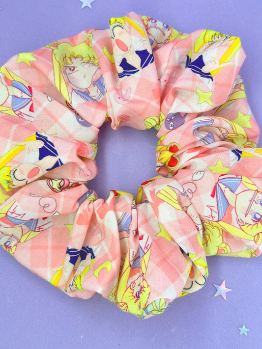 Anime Girl Gingham Face Scrunchie