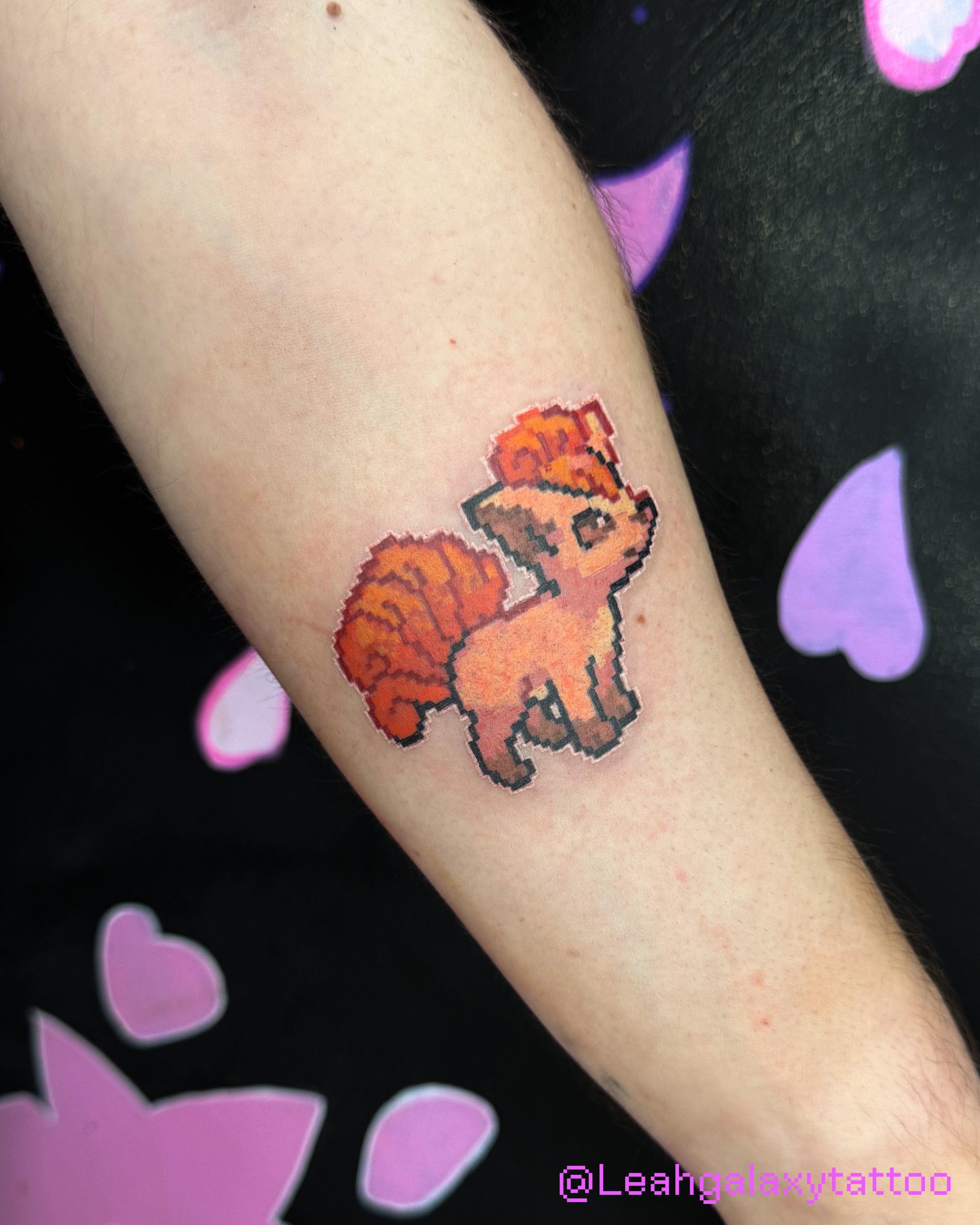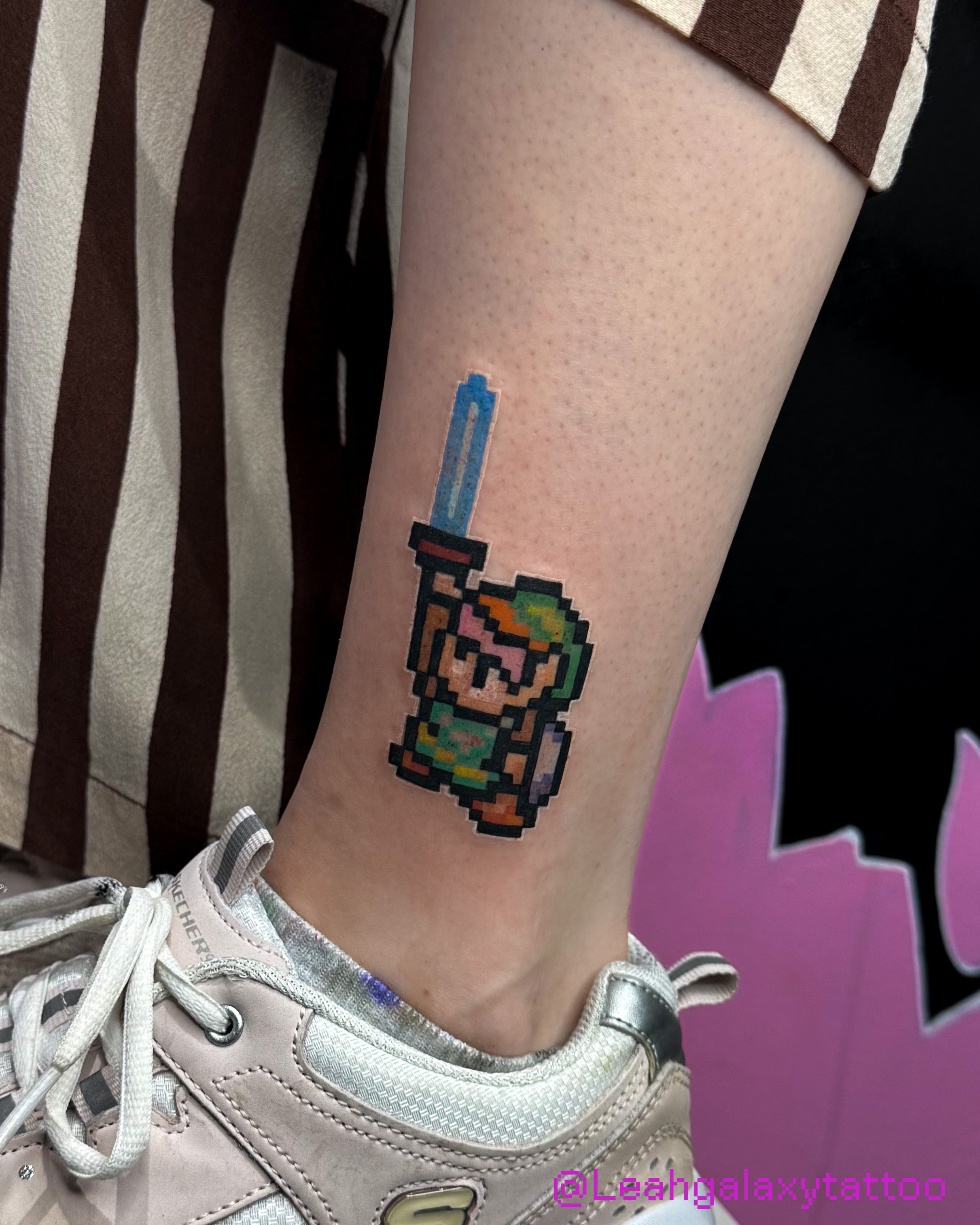 Whether it’s pixel-style designs, colourful Pokémon pieces, or blackwork, I enjoy working with people who share the same love for geeky stuff!